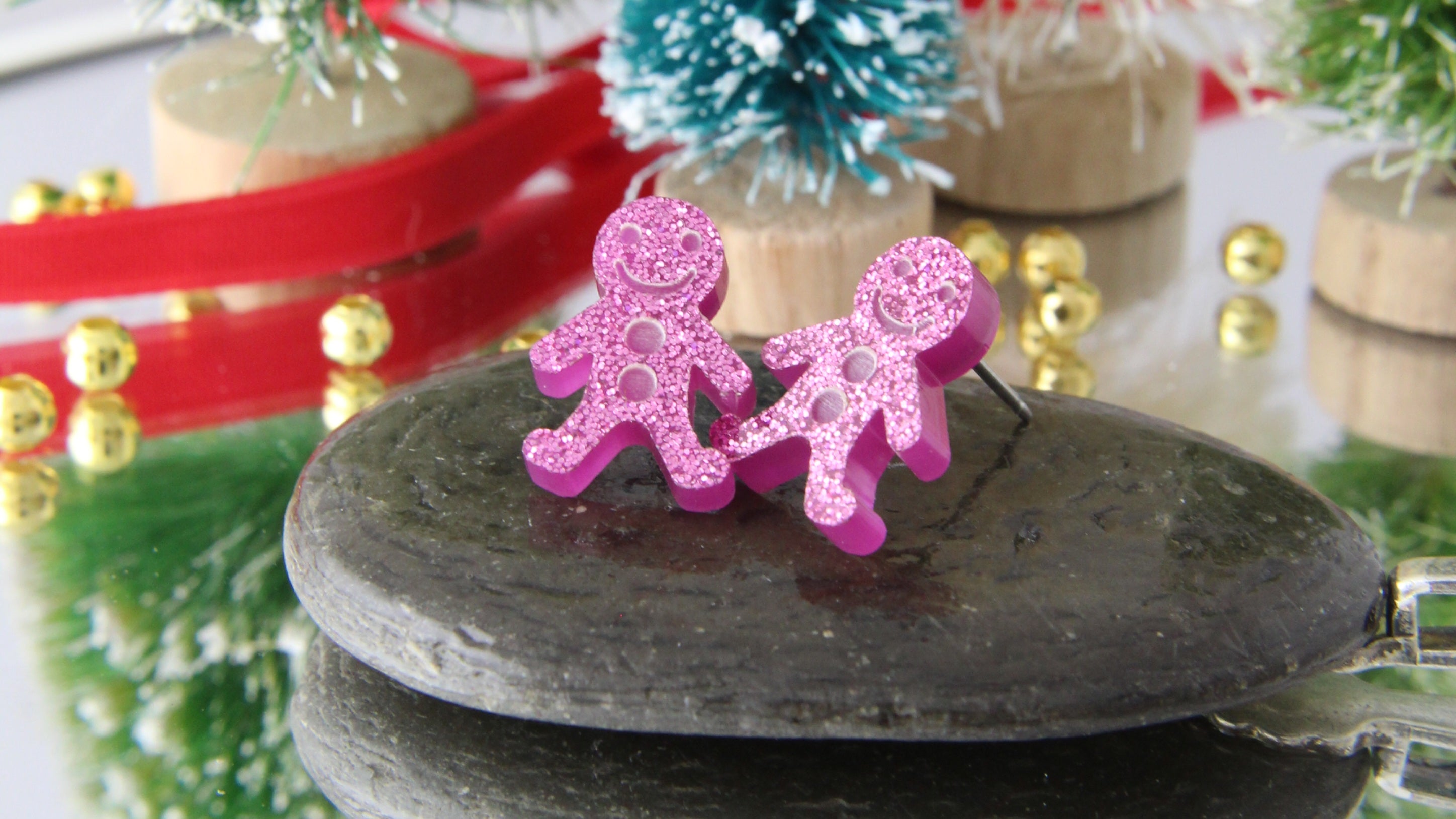 Jolly Gingerbread Man Acrylic Earrings Dangles