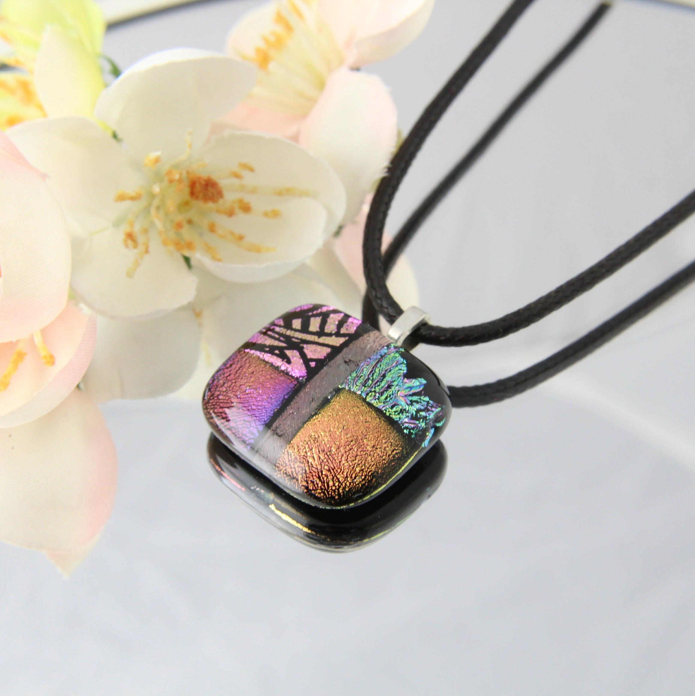 'Rainbow Flower' Fused Glass Flat Out Dangles Earrings