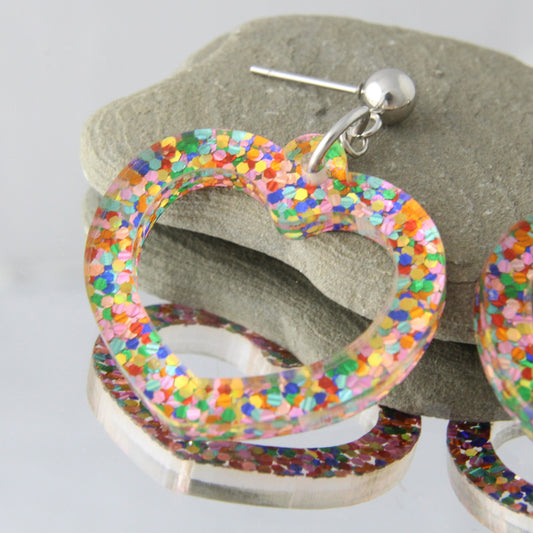 Disco Glitter Hearts Drop Earrings