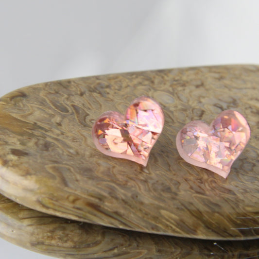 'Crinkly Pink Heart' Stud Earrings