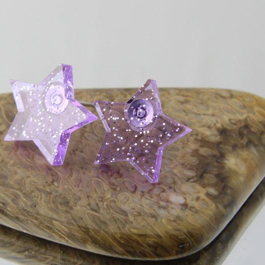 Translucent Purple Glitter Star Earrings Studs