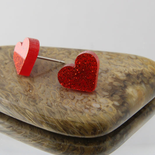 Red Heart Glitter Studs Earrings