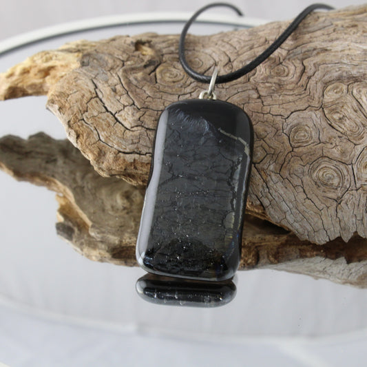 Dark Crackle Fused Glass Pendant
