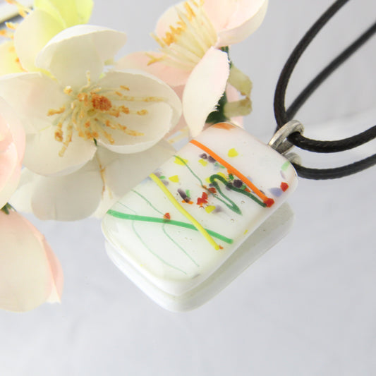 White Confetti Fused Glass Pendant