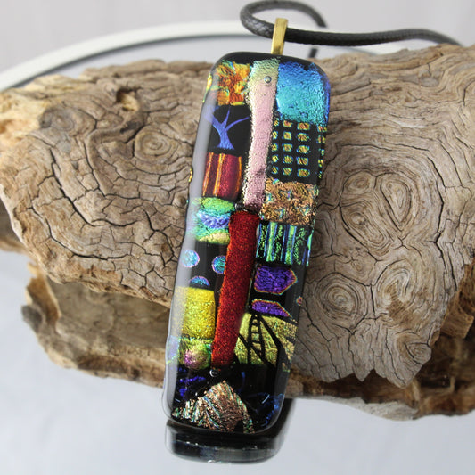 A Rainbow Riot Fused Glass Pendant