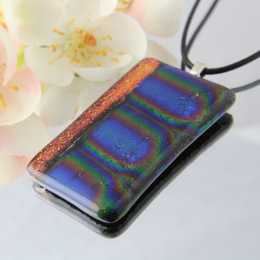 Iridescent Stripe Fused Glass Pendant