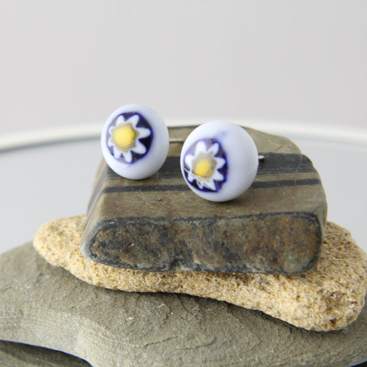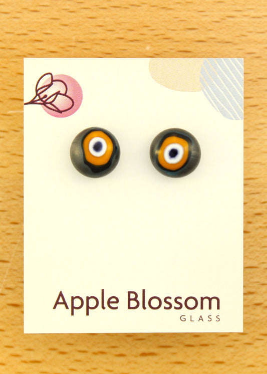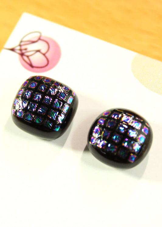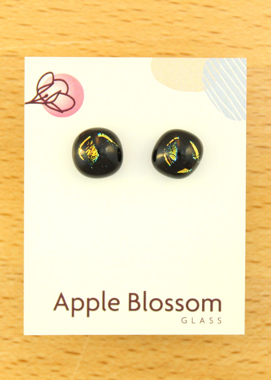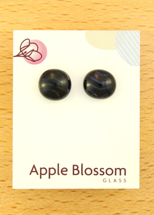 'Black Dragon Stripes' Fused Glass Earrings Studs