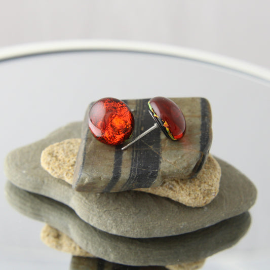 'Red Oval' Fused Glass Studs
